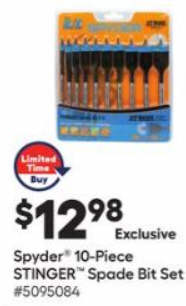 Spyder Stinger 10-Piece x 6-in Woodboring Spade Drill Bit Set