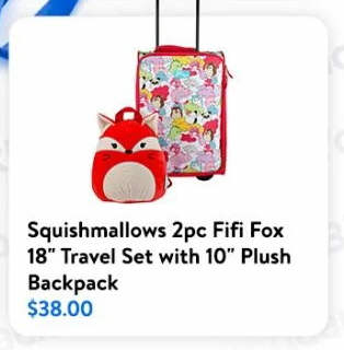 Squishmallows Fifi Fox 2pc Travel Set with 18" Luggage and 10" Plush Backpack