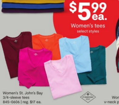 St. John's Bay Womens V Neck 3/4 Sleeve T-Shirt