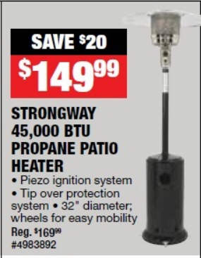 Strongway Strongway Patio Heater-45,000 BTU, Propane, Black, Fuel Type Propane, Diameter 32 in, Material Galvanized Steel, Model# CZGB-A