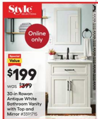 Style Selections Rowan 30-in Antique White Undermount Single Sink Bathroom Vanity with White Engineered Stone Top (Mirror Included)