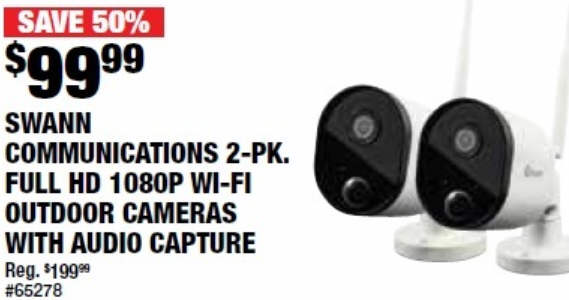 Swann Communications Full HD 1080P Wi-Fi Outdoor Cameras with Audio Capture - 2-Pk.