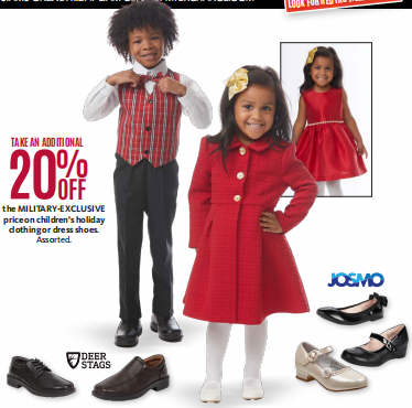 TAKE AN ADDITIONAL 20% OFF the MILITARY-EXCLUSIVE price on children s holiday clothing or dress shoes.