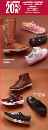 TAKE AN ADDITIONAL 20% OFF he MILITARY-EXCLUSIVEprice on ALL children s footwear.