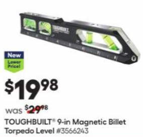 TOUGHBUILT Aluminum 9-in 4 Vial Torpedo Level