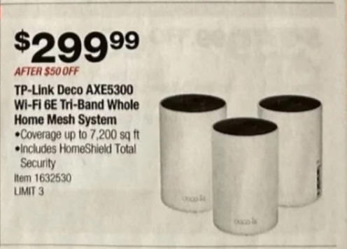 TP-Link Deco AXE5300 Wi-Fi 6E Tri-Band Whole-Home Mesh Wi-Fi System, 3-Pack