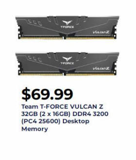 Team T-FORCE VULCAN Z 32GB (2 x 16GB) DDR4 3200 (PC4 25600) Desktop Memory