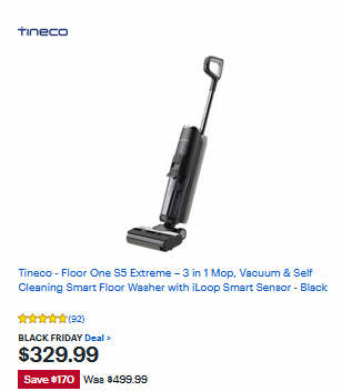 Tineco - Floor One S5 Extreme 3 in 1 Mop, Vacuum & Self Cleaning Smart Floor Washer with iLoop Smart Sensor - Black