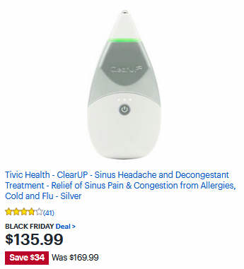 Tivic Health - ClearUP - Sinus Headache and Decongestant Treatment - Relief of Sinus Pain & Congestion from Allergies, Cold and Flu - Silver