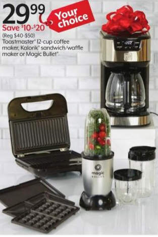 Toastmaster 12-cup coffee maker, Kalorik sandwich/waffle maker or Magic Bullet