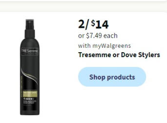 Tresemme or Dove Stylers: 2/ $14 or $749 each