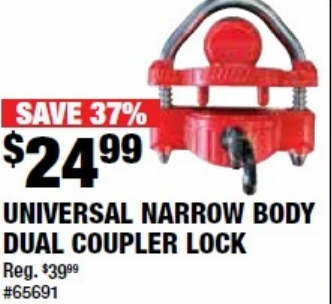 Trimax Universal Narrow Body 1/2in. Steel Shackle Dual Coupler Lock with an Integrated U-Lock Feature, Model# UMAX25D