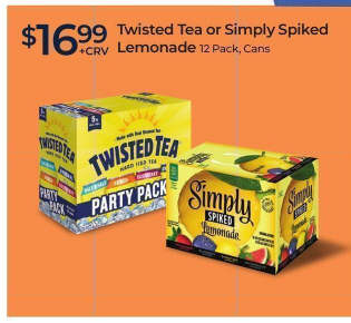 Twisted Tea or Simply Spiked Lemonade 12 Pack, Cans: $16.99 +CRV