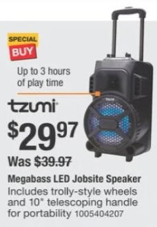 Tzumi Megabass LED Jobsite Speaker