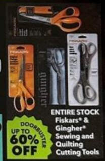 UP TO 60% OFF ENTIRE STOCK Fiskars & Gingher Sewing and Quilting Cutting Tools
