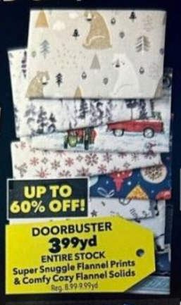 UP TO 60% OFF ENTIRE STOCK Super Snuggle Flannel Prints & Comfy Cozy Flannel Solids 3.99yd