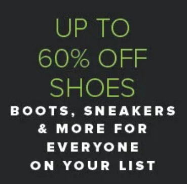 UP TO 60% OFF SHOES BOOTS, SNEAKERS & MORE FOR EVERYONE ON YOUR LIST