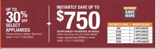 Up to 30% off Select Appliances + Instantly Save up to $750