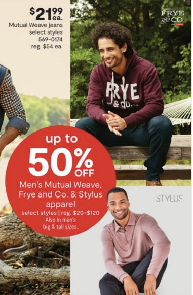 Up to 50% off Men's Mutual Weave, Frye and Co. & Stylus Apparel