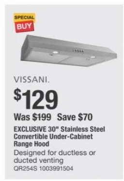 VISSANI 30" Stainless Steel Convertible Under-Cabinet Range Hood
