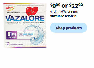 Vazalore Aspirin $9.99 or $22.99
