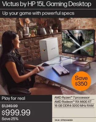 Victus by HP 15L Gaming Desktop, Windows 11 Home, AMD Ryzen 7, 16GB RAM, 512GB SSD, 1TB HDD, AMD Radeon 6600XT