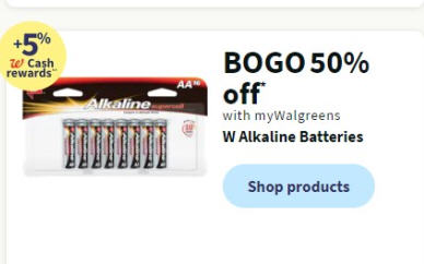 W Alkaline Batteries BOGO 50% off
