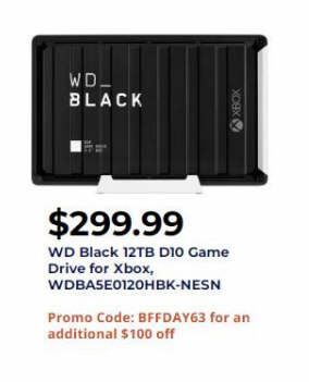 WD Black 12TB D10 Game Drive for Xbox, WDBA5E0120HBK-NESN $299.99 via coupon BFFDAY63