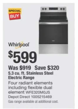 WHIRLPOOL 5.3 cu. ft. Stainless Steel Electric Range