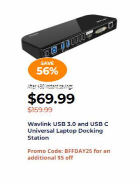 Wavlink USB 3.0 and USB C Universal Laptop Docking Station $69.99 via coupon BFFDAY25
