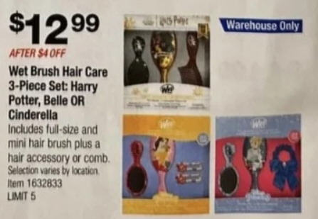 Wet Brush Hair Care 3-Piece Set Harry Potter, Belle OR Cinderella+ full-size and mini hair brush plus a hbir accessory or comb
