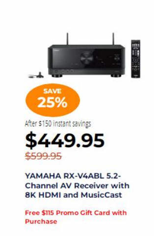 YAMAHA RX-V4ABL 5.2-Channel AV Receiver with 8K HDMI and MusicCast