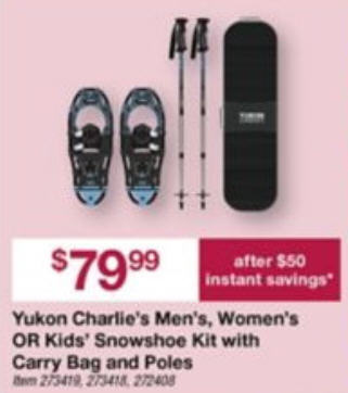 Yukon Charlie's Men's, Women's OR Kids' Snowshoe Kit with Carry Bag and Poles