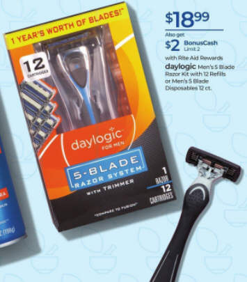 daylogic Men's 5 Blade Razor Kit with 12 Refills or Men's 5 Blade Disposables 12 ct.