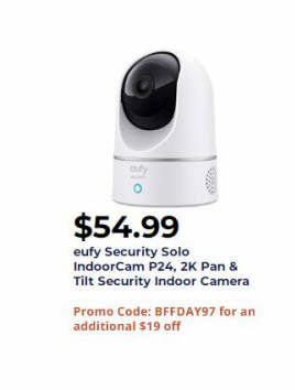 eufy Security Solo IndoorCam P24, 2K Pan & Tilt Security Indoor Camera $54.99 via coupon BFFDAY97