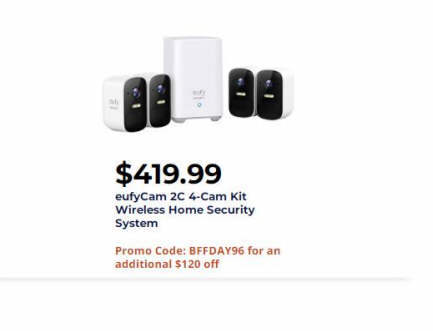 eufyCam 2C 4-Cam Kit Wireless Home Security System $419.99 via coupon BFFDAY96