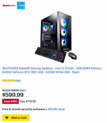 iBUYPOWER SlateMR Gaming Desktop - Intel i3-12100F - 8GB DDR4 Memory - NVIDIA GeForce GTX 1650 4GB - 500GB NVMe SSD - Black