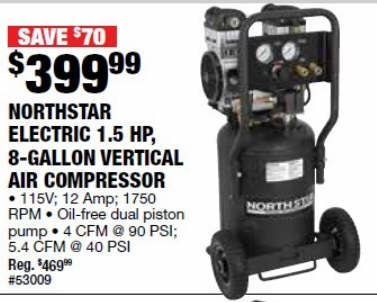 orthStar Portable Electric Air Compressor -1.5 HP, 8-Gallon Vertical Tank, Super-Quiet Operation, Oil Free Pump, 4 CFM @ 90 PSI