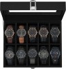 10-Slot SONGMICS Watch Case Organizer with Large Glass Lid (Black + Black)
