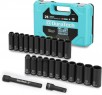 24-Piece Duratech 1/2" Deep Impact Socket Set with Extension Bars (Metric & SAE, Hard Case Included)