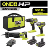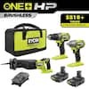 RYOBI ONE+ HP 18V Brushless Cordless 3-Tool Combo Kit with (2) 1.5 Ah Batteries, Charger, and Bag