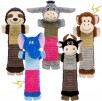 5-Pack No Stuffing Dog Squeaky Toys with Crinkle and Squeaker (Donkey, Elephant, Cattle, Monkey & Sloth)