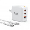 3-Port (1xUSB-A, 2xUSB-C) SELORE 67W USB C GaN Foldable Charger Block w/ 4' 100W USB-C Cable (White)