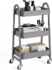 3-Tier OLIXIS Utility Rolling Cart, Metal Mobile Storage Shelf with Lockable Caster Wheels (Gray)