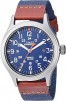Adjustable blue 20mm nylon strap with brown genuine leather trim fits up to 8-inch wrist circumference