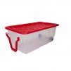 40-Gal HDX Tough Storage Tote with Wheels and Handle (Red and Clear)