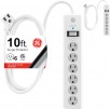 GE 6-Outlet Surge Protector, 2 Pack, 10 Ft Extension Cord
