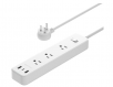 Includes a white power strip with 3 AC outlets and 3 USB charging ports (1 USB-C and 2 USB-A)