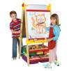This 4-in-1 Ultimate Art Easel is Double Sided for Lots of Creative Fun! Wipe Off Dry Erase Board on one side- Chalk Board on the other side. Includes 35 ft Paper Roll, 5 Super Storage Bins to Fit All of your Supplies, 53-55" Adjustable Easel that Grows with your Child. Folds Flat for Easy Storage. Hardware and Easy Assembly Instructions Included.