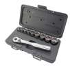 A wide assortment of 3/8 in. dr. sockets to turn a variety of fasteners. 6 pt. sockets for good side wall contact, plus a teardrop ratchet. Socket tray allows organization and portability